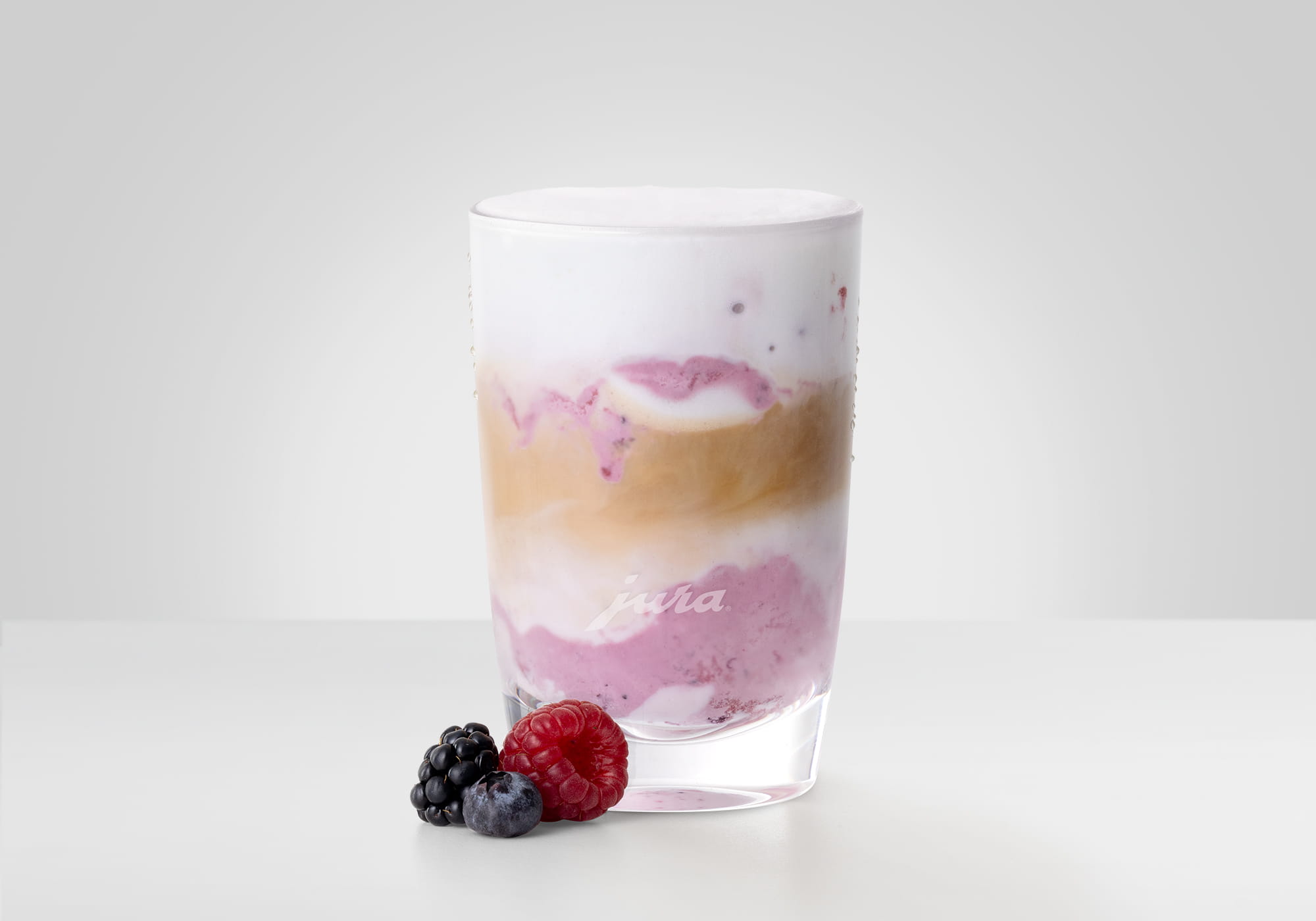 • Положите два шарика мороженого с лесными ягодами в небольшой стакан для латте маккиато.